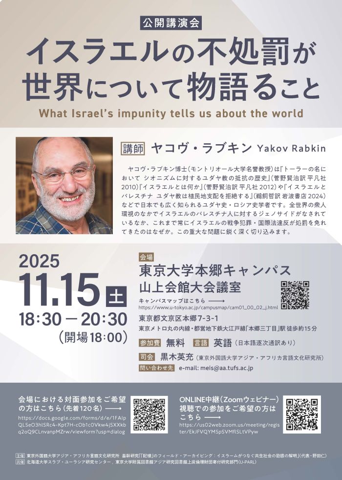 【事後掲載】公開講演会 イスラエルの不処罰が世界について物語ること
