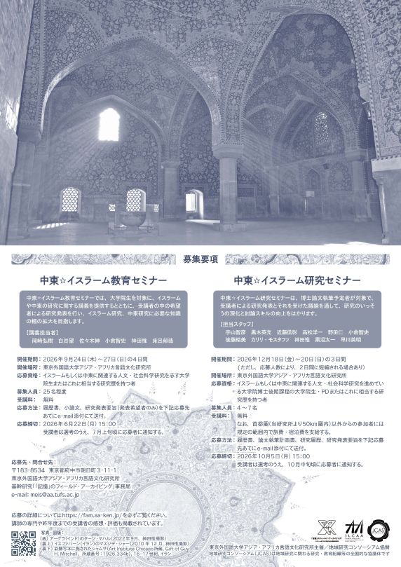 2026.03.09中東☆イスラーム研究セミナー終了開催日:2025年12月19日 (金) ~ 2025年12月21日 (日)