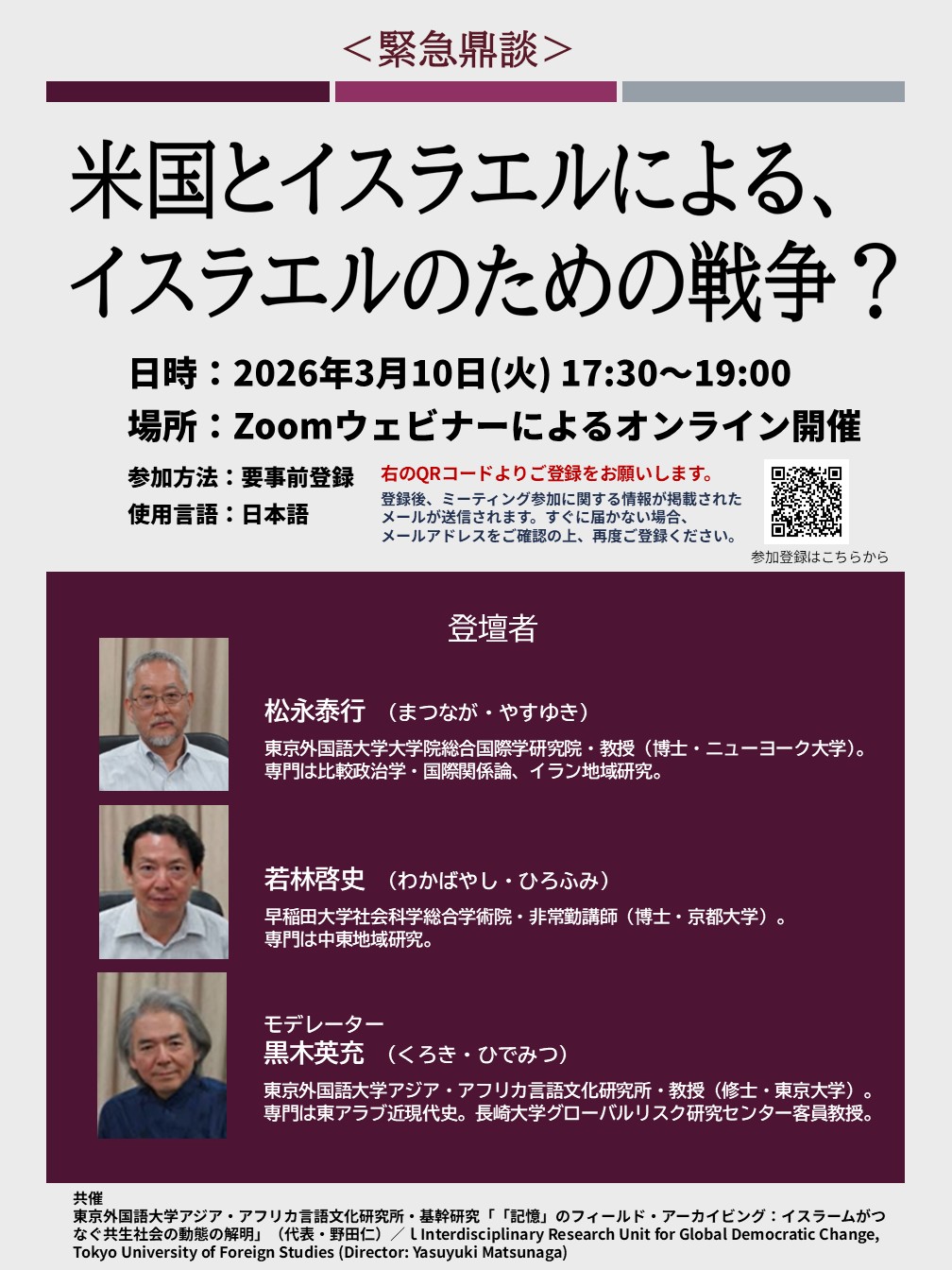 ・Interdisciplinary Research Unit for Global Democratic Change, Tokyo University of Foreign Studies (Director: Yasuyuki Matsunaga)